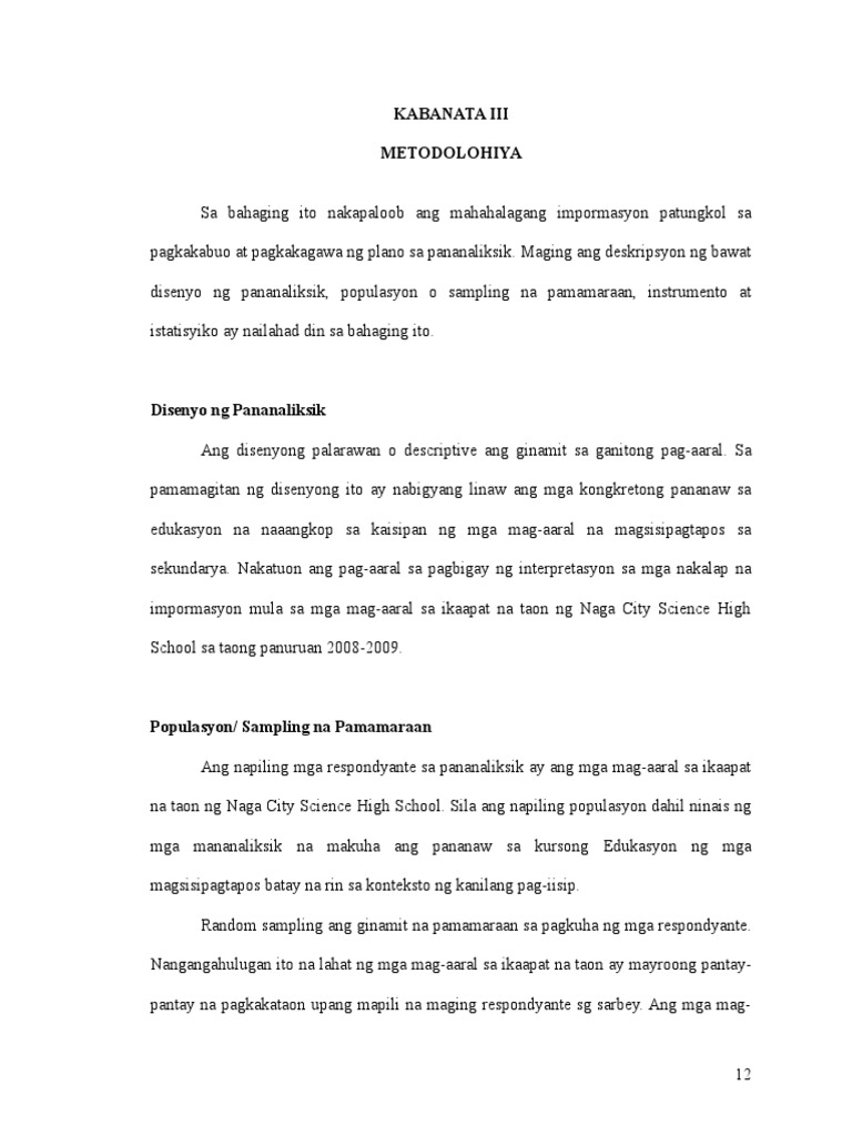 Pagsasagawa ng ikatlong kabanata na naglalaman ng metodolohiya ng. Ang pamilya ang sandigan ng mga anak at siyang gumagamay sa mga anak patungo sa tamang daan. 1 Kailangang matukoy ng mananaliksik ang mga may-akda o taong pinagmulang mag nakalap niyang.