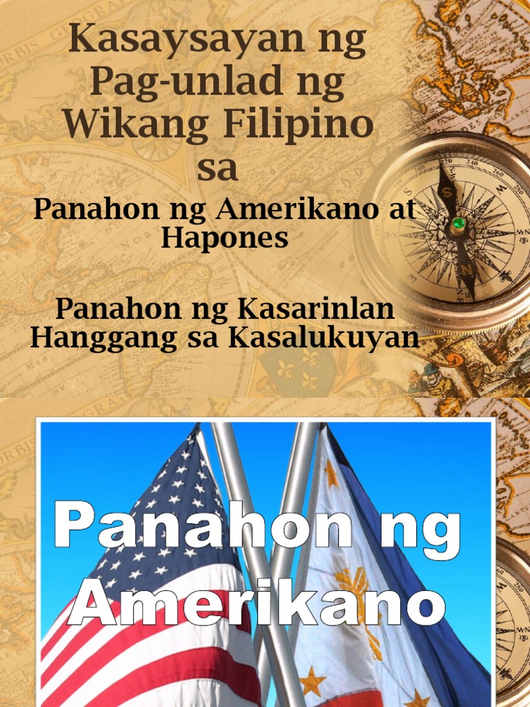 Kasaysayan ng Wika Sa Panahon ng Amerikano. Ipaliwanag ang mga sumusunod na termino o pangalan. Panahon ng kasarinlan hanggang sa kasalukuyan dumating ang mga amerikano sa pilipinas noong taong 1898 sa pamumuno si george dewey mayo 1 1898 kasunduan sa paris disyembre 10 1898 upang tuluyang masakop ang buong pilipinas kinuha nila ang loob ng mga mamamayang pilipino sa pamamagitan ng pagbibigay ng.